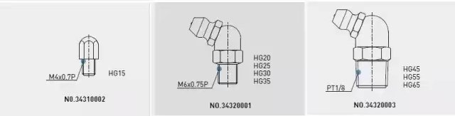 滑塊標(biāo)配油嘴除HG15油嘴是直的,其他都是彎的。